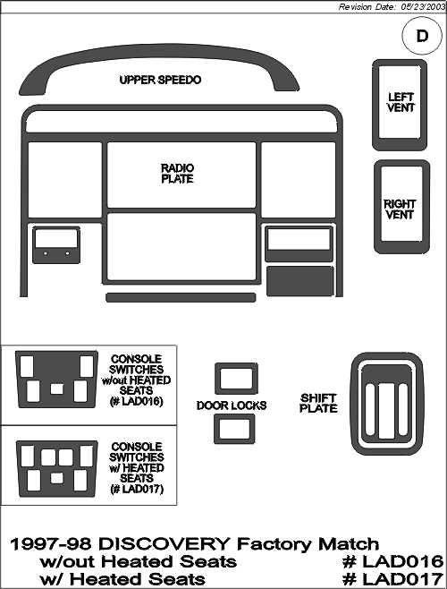 These are the Classic Flat Trim products available for the 1997-98 Land Rover Discovery.